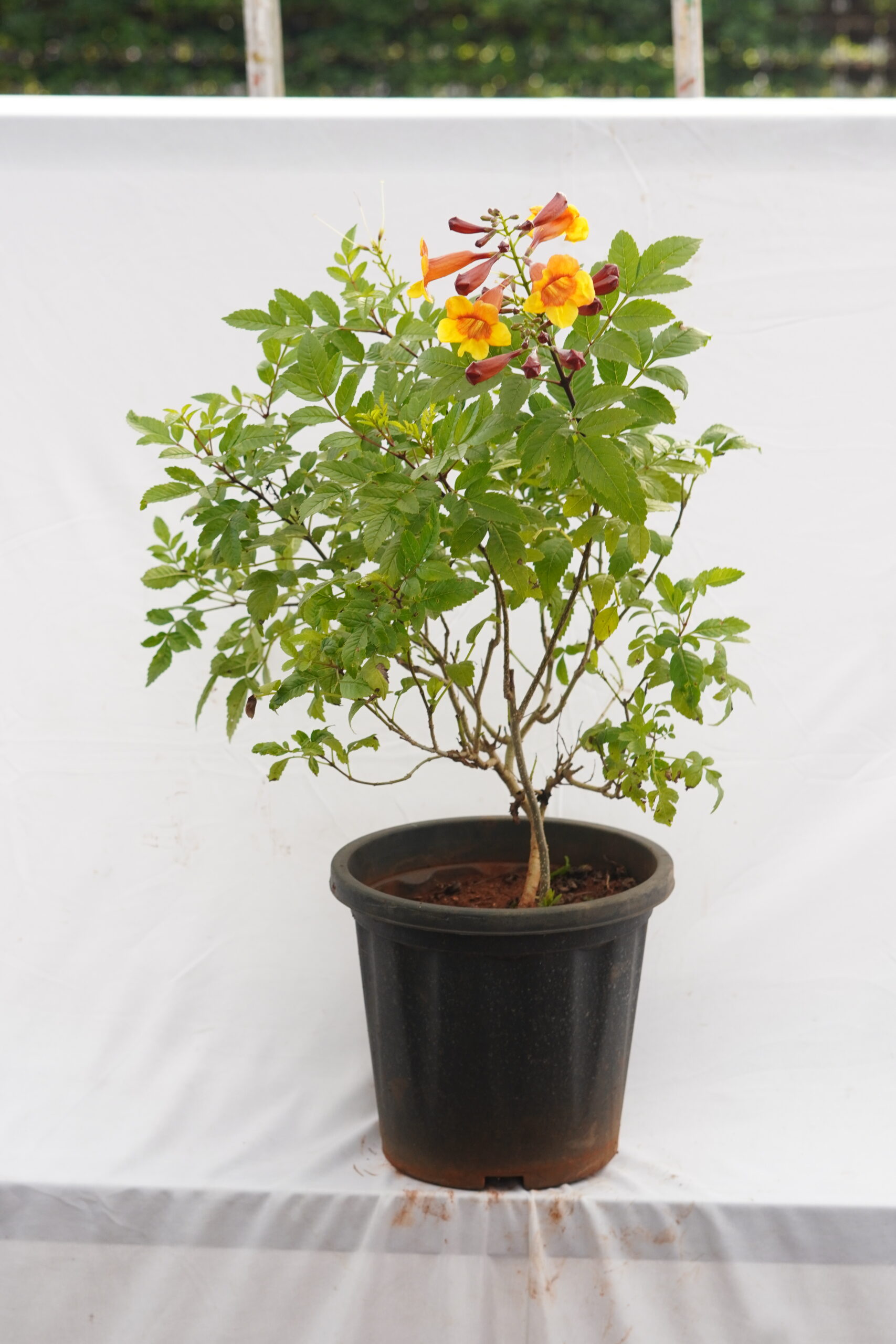 – A flowering plant with trumpet-shaped yellow blooms.